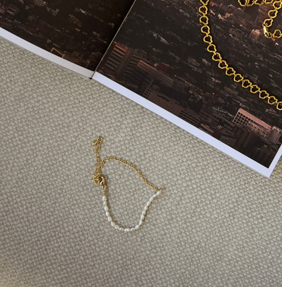 Featuring a mix of tiny freshwater pearls and a dainty Figaro chain, this beautiful anklet ooks perfect worn alone or stacked up. clasp can be but through any of the larger links in the chain to adjust the size.