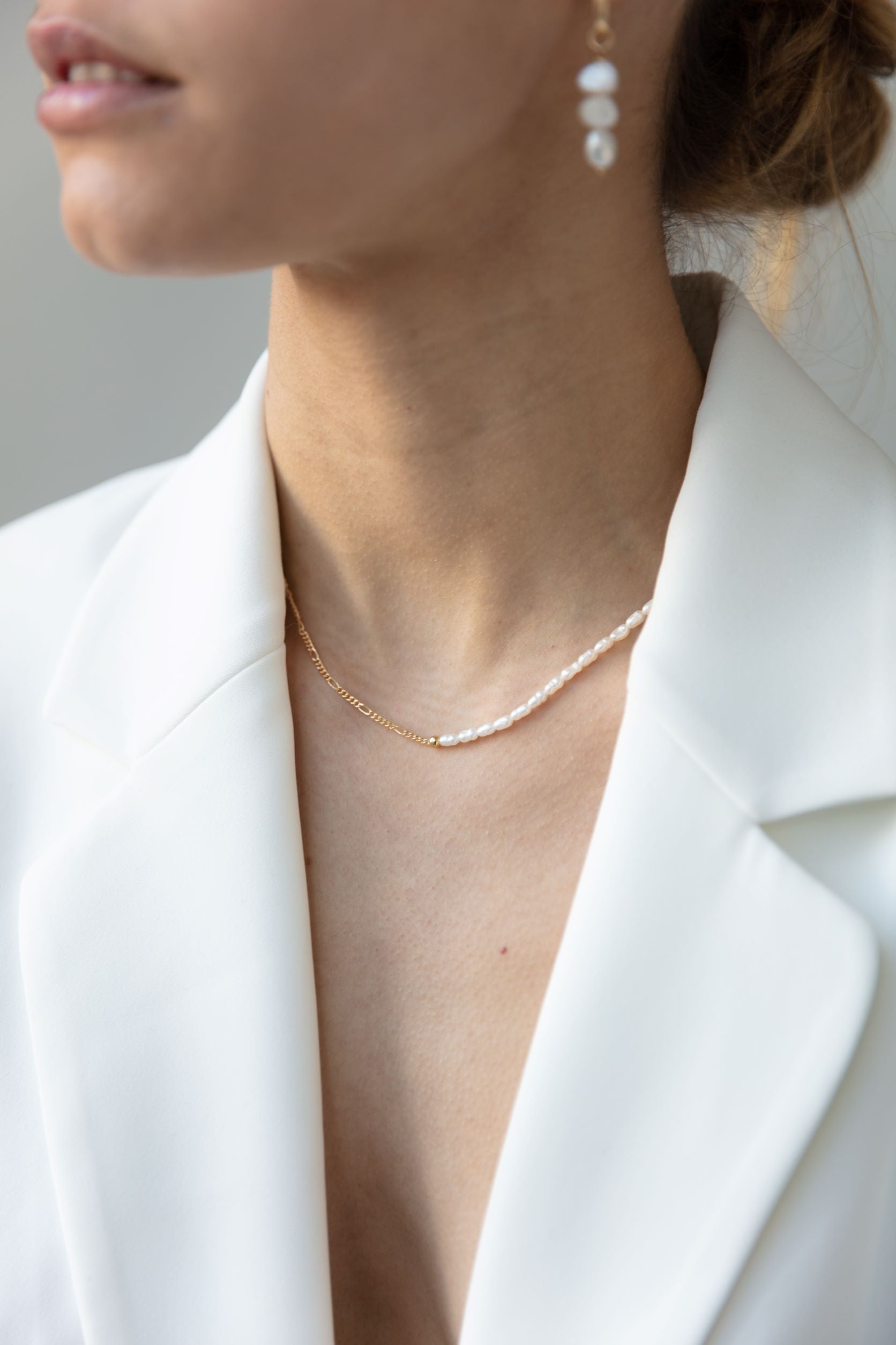 Featuring a mix of tiny freshwater pearls and a dainty Figaro chain, this beautiful necklace looks perfect worn alone or layered up.