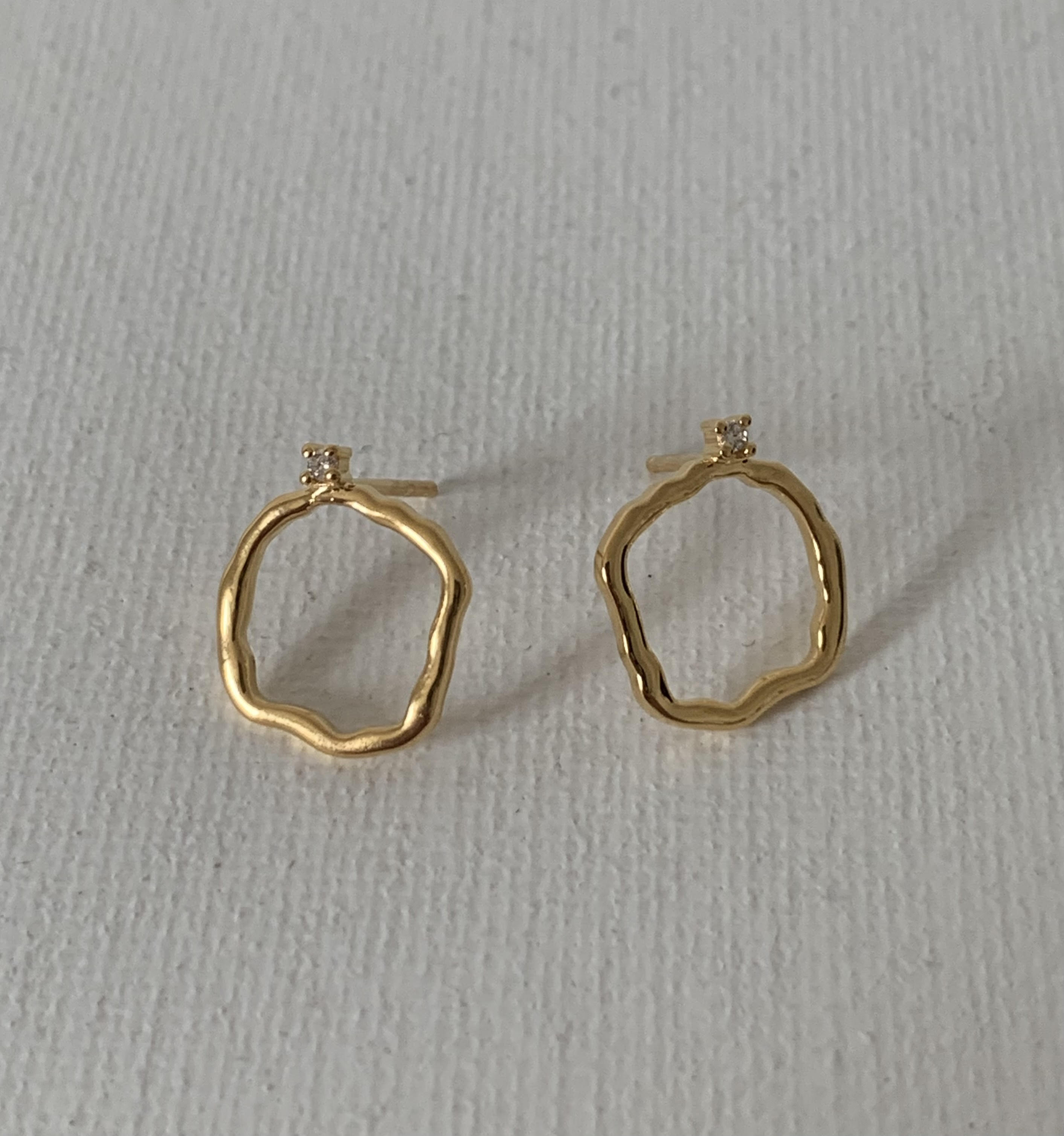 Mabe&A passion for travel has inspired this special design, created from the idea of natural waves of the ocean and the Gemstone representing the sun. These organic hoops are unique just like the memories you'll create when wearing them.
