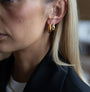 The everyday mini-pearl hoops feature a hammered texture detailing with three rounded pearls gemstones. Wear solo or team with the Teardrop hoops for a curated ear stack!