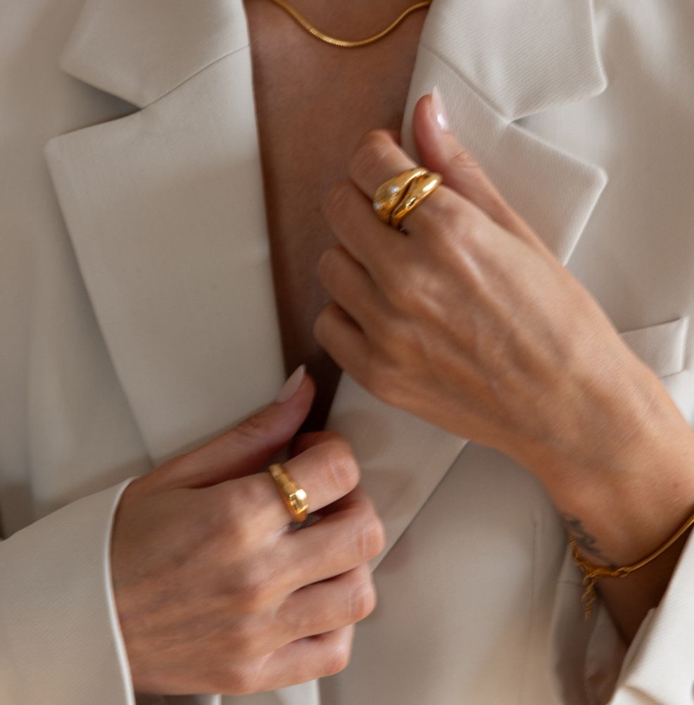 This versatile piece is designed for stacking with other rings from our collection or wearing on its own. We have paired it with the Crackle ring for an ultimate statement. Mix and match to create a look that's uniquely you.