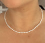 The Esme Pearl Necklace, made from small potato-shaped freshwater pearls, Esme is adjustable from 15" choker length to 17" We love to layer this style with longer chains from our collection for a statement look.